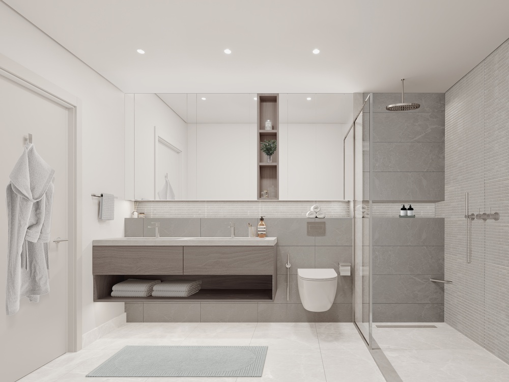 - Szaniterek és bútorok beszerelése: Ezzel kezdődnek a „szebb” munkálatok, mint a WC, mosdó, zuhany/kád, csaptelepek, tükrök, világítás és fürdőszobabútorok beszerelése.
