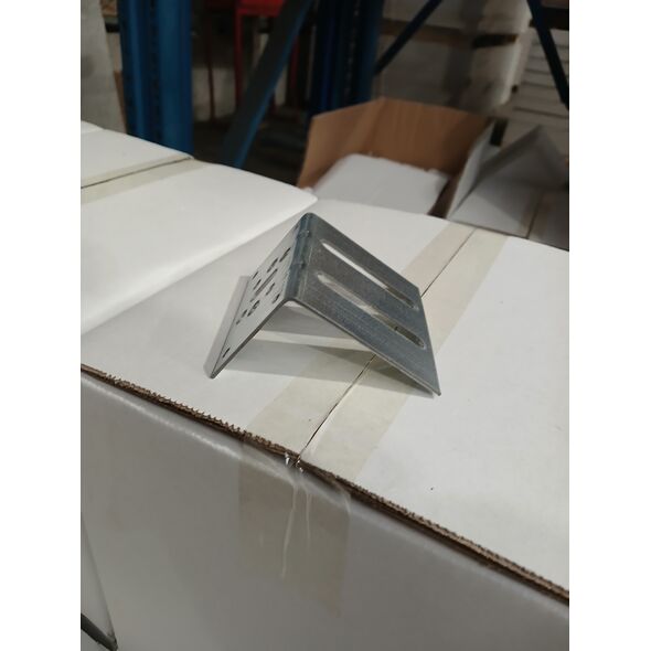 A L‑rögzítő merevbordához egy 2,0 mm vastag, horganyzott acélból készült elem, amely az UA‑profilok padlóhoz és födémhez való rögzítését szolgálja. Szélességi kialakítása úgy lett megtervezve, hogy pontosan illeszkedjen az UA‑bordák szárai közé. A kör alakú furatok a padló- vagy födémrögzítés helyét határozzák meg, míg a hosszúkás perforációk a merevítőprofilhoz történő csavarozást teszik lehetővé.